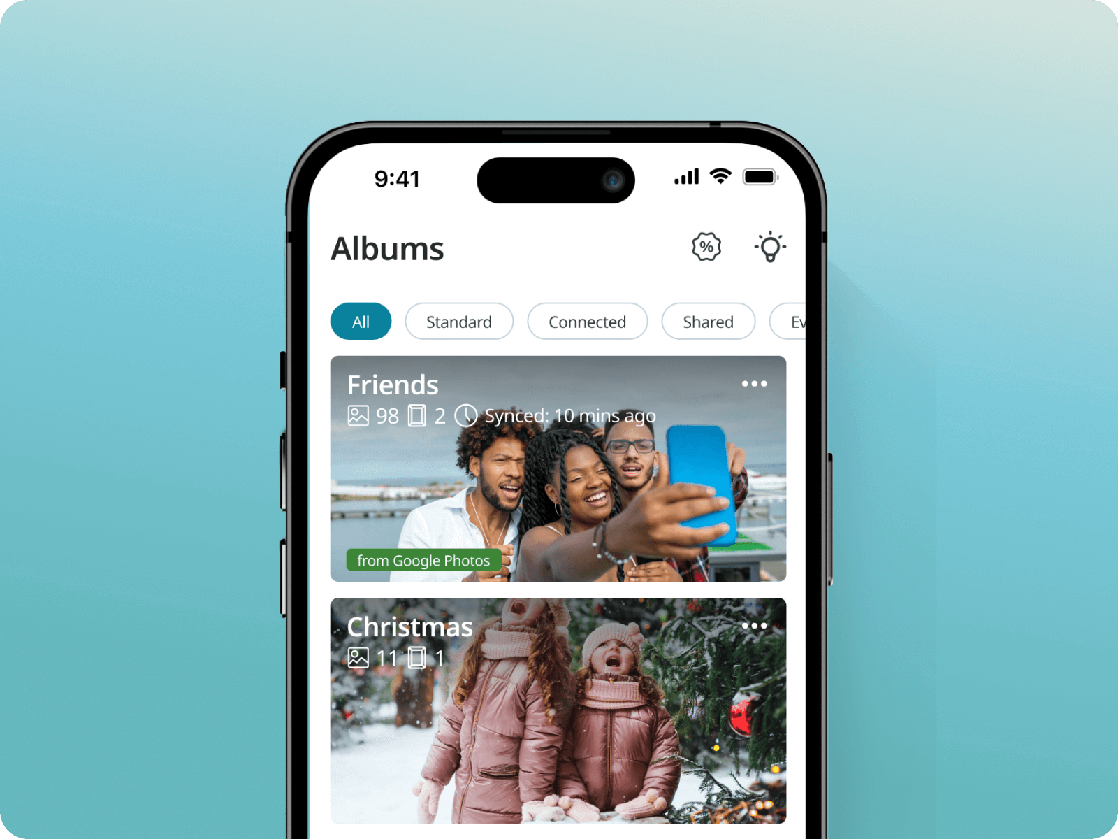 Commencez par créer une bibliothèque d’albums photo et vidéo à partager et à afficher sur des cadres numériques et des écrans de télévision