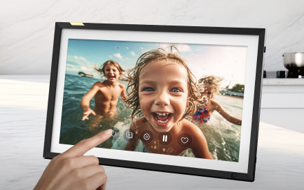 | Disponible sur tous les cadres | haut-parleur intégré Orientation intelligente pour portrait et paysage Prix pour la présentation de photos et vidéos Préchargement du contenu pour la configuration du cadeau |