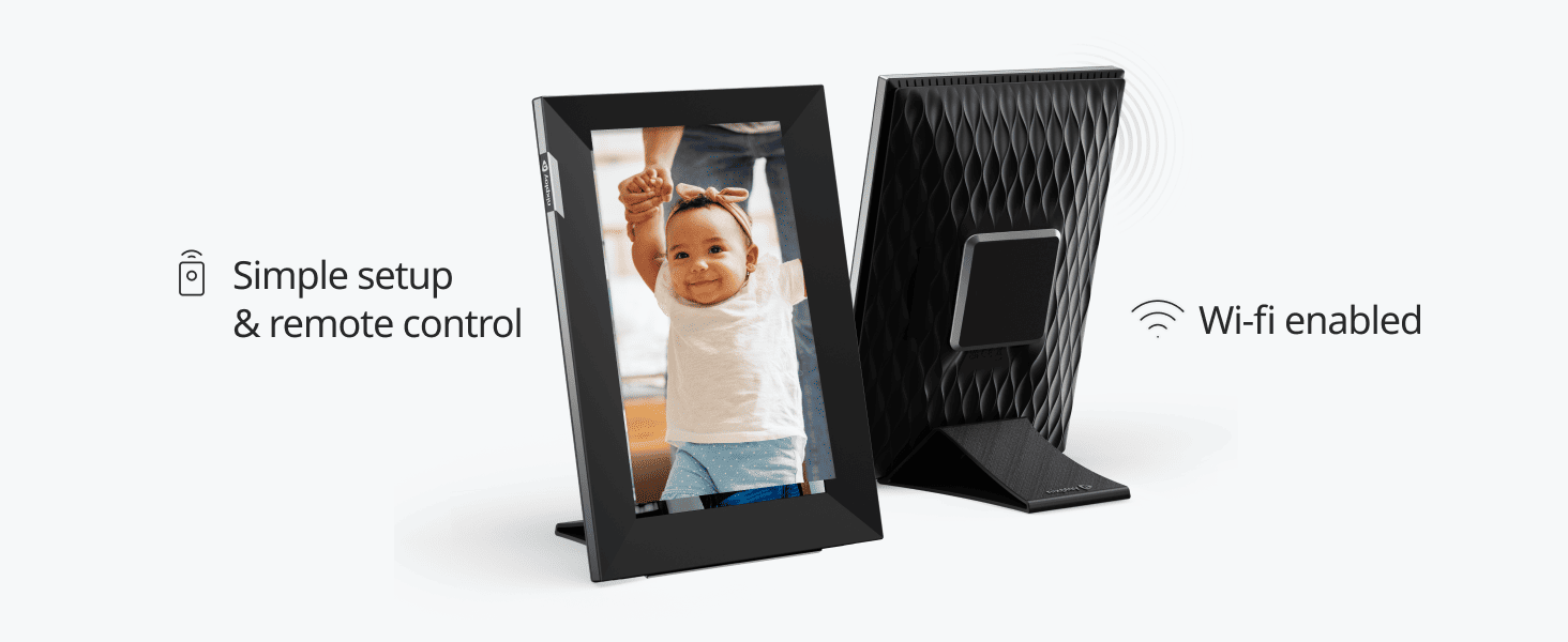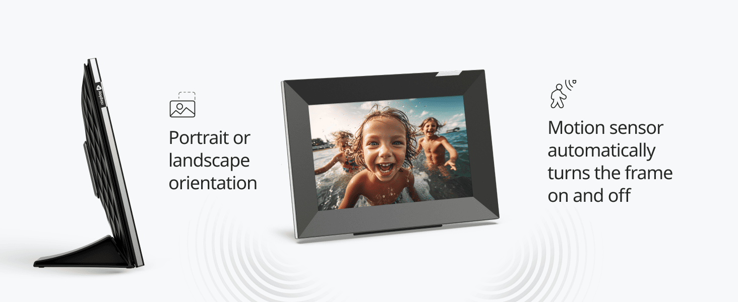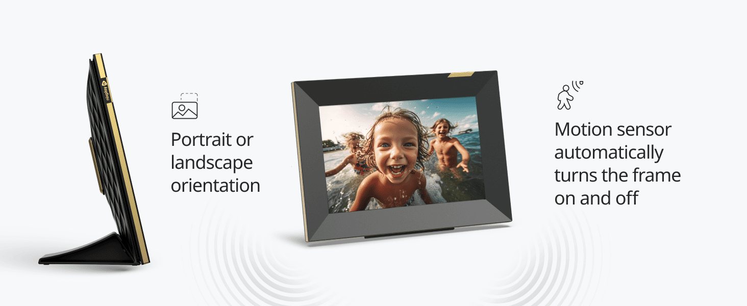 | Disponible sur tous les cadres | haut-parleur intégré Orientation intelligente pour portrait et paysage Prix pour la présentation de photos et vidéos Préchargement du contenu pour la configuration du cadeau |